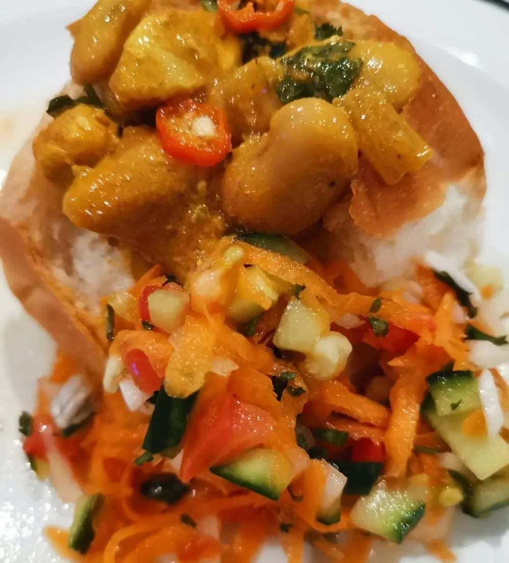 Firm favourites are kos like frikkadel, sosaties, breyani, potjiekos, bredies, Cape Malay curries, samp and beans, bokkoms, biltong, bunny chows, boerewors, milk tart, malva pudding or peppermint tart, just to name a few.