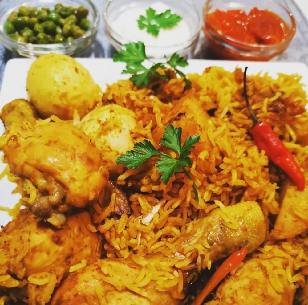 In an ovensafe dish add ¾ of the rice, potatoes, eggs, some fried onions and half of the masala. Add the chicken and sprinkle over the remaining rice, onions and the rest of the masala.