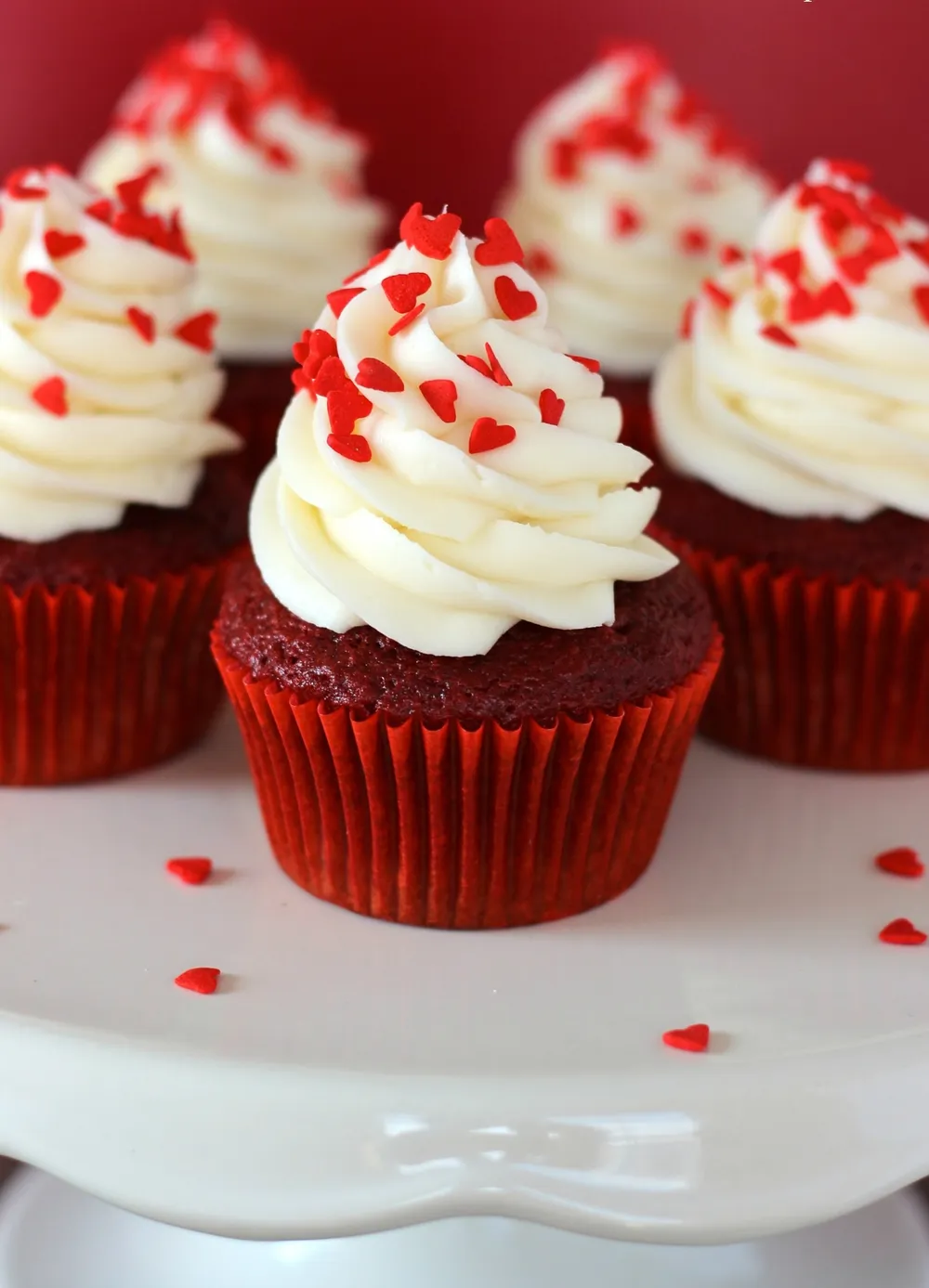 Ice each cupcake as desired, adding heart sprinkles, a strawberry or a cherry on the top of each for that final touch.