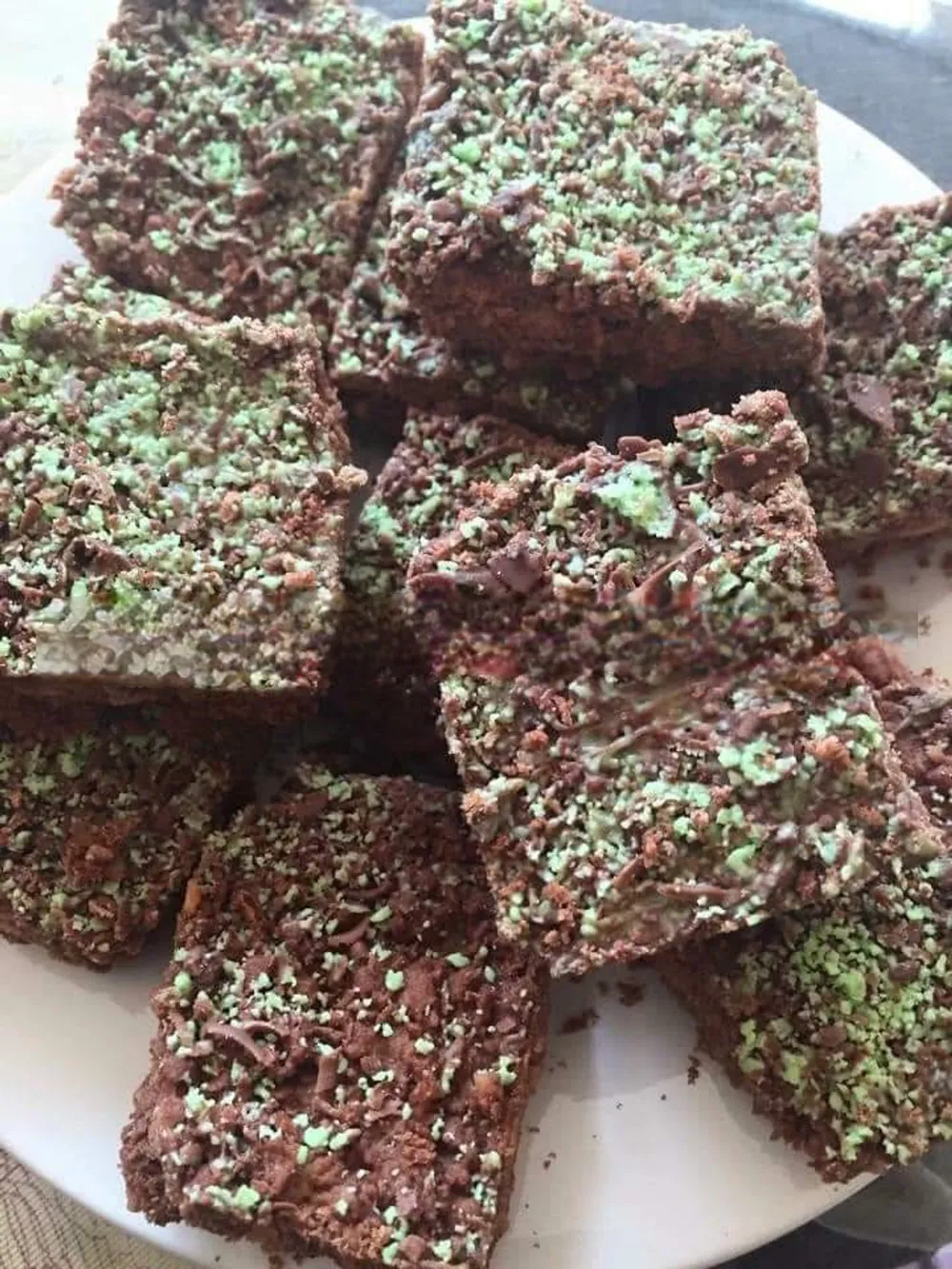 Allow to cool slightly before slicing into squares. Gently remove the squares from the tin and leave to cool completely on a wire cooling rack before storing in an airtight container.