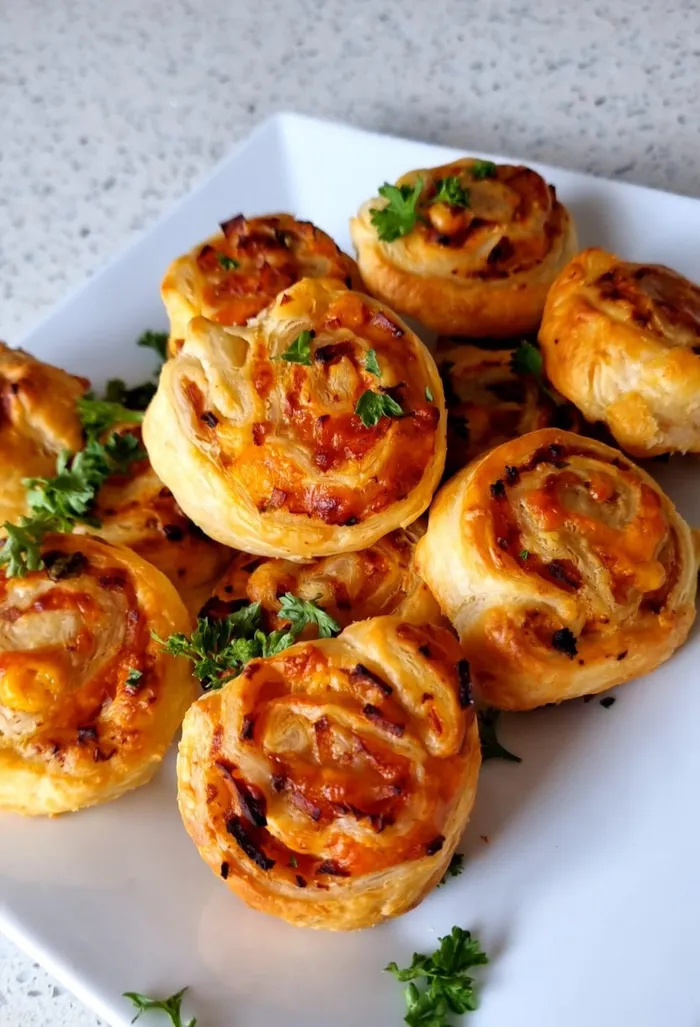 Use one roll puff pastry and cut out the rounds using a scone cutter or a glass.