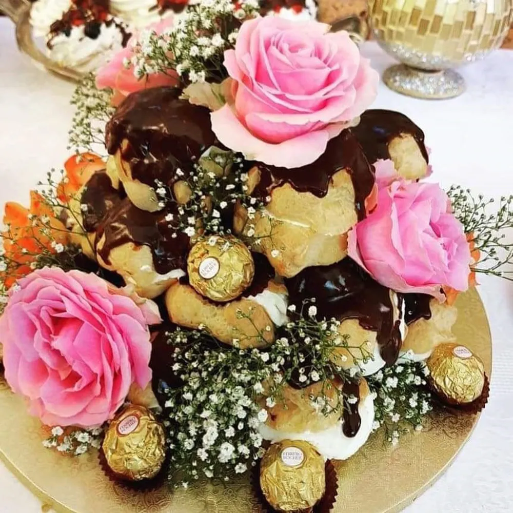 Once cooled, fill fresh cream, top with melted chocolate and grate some milky bar.