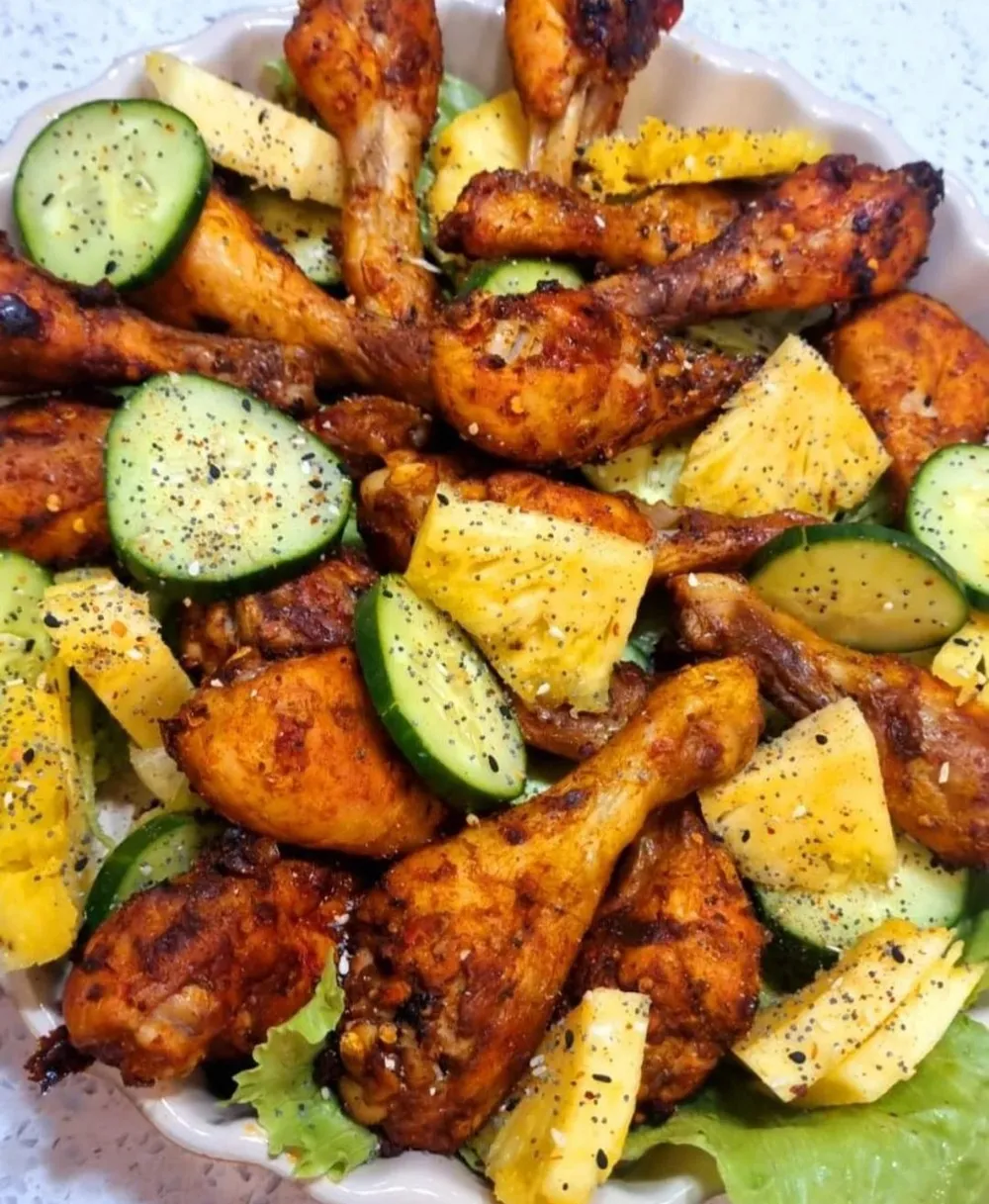 Serve on a bed of lettuce, cucumber, pineapple, or anything else you lus for