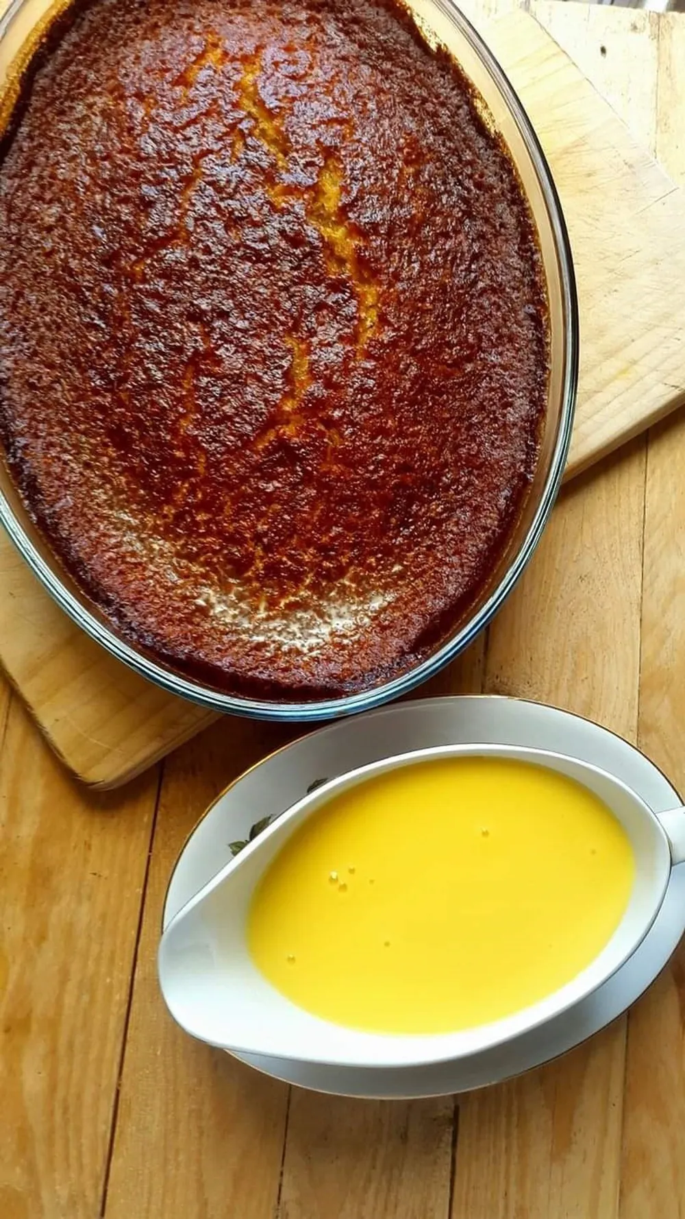 Tip: instead of making your own sauce, heat half a can of evaporated milk with a teaspoon of vanilla essence until warm and pour over the malva cake immediately after taking it out of the oven.