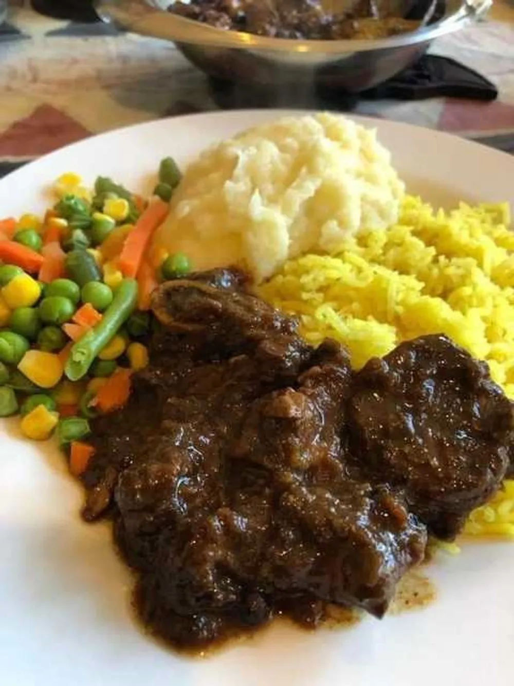 Delicious served with yellow rice, mashed potatoes and boiled squash or and mix vegetables