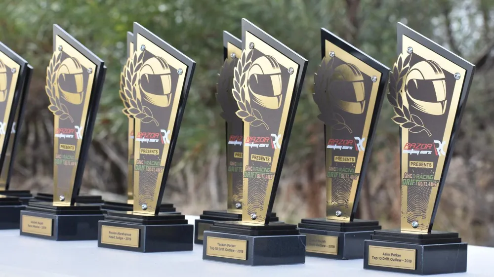TROPHY: Every Top 10 driver is given a prize in Drift Outlaws. Photo: UBAYDULLAH CERES