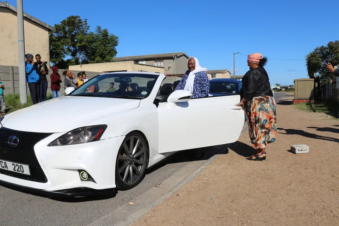 ARRIVE IN STYLE: Ouma Nora de Kock lekker excited to get into the convertible Lexus. PICTURES: TASHREEQ OF TASHNATION