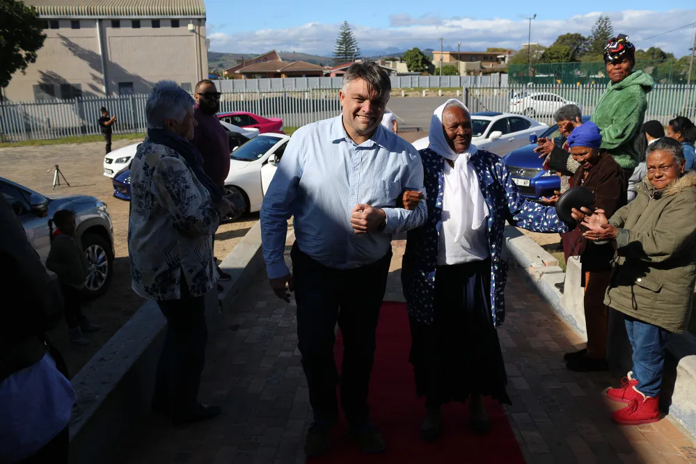 Carol says: “When the cars arrive all the elderly people came out and welcomed Ma Nora, with Ward 11 councillor Wouter de Vos escorting her from the car to the hall.”