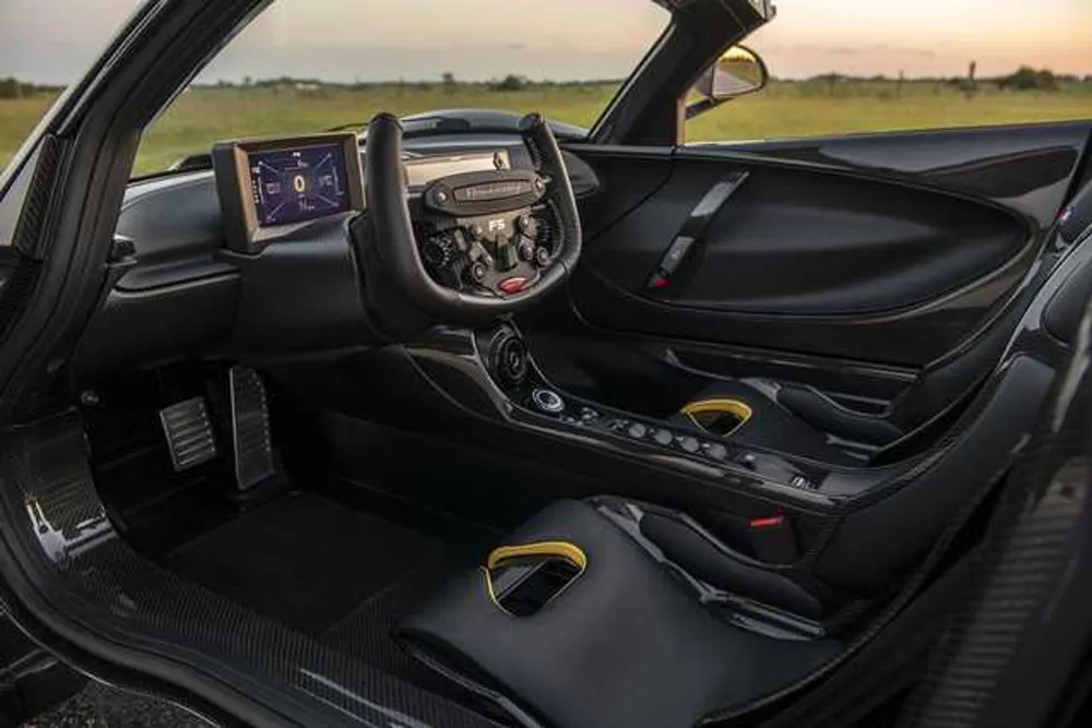 Usually, when you take the top off it’s a major compromise on the rigidity that is needed at the track, but Hennessey claims the carbon-fibre monocoque and body still maintain the stiffness required.