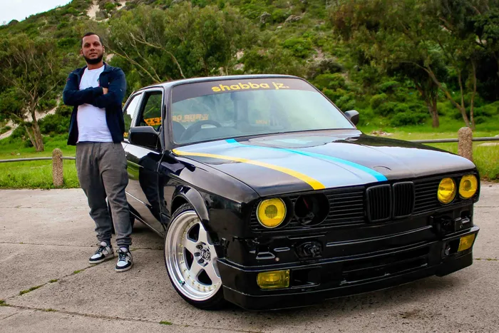 PRIDE: Shabier ‘Shabba’ Lakey and his redone BMW E30 cabbi.Pictures: Shahiem Bell
