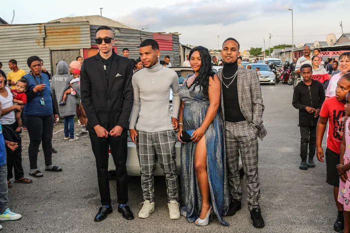 DRESSED UP: From right, Yasser-Arafat Pieters, Jade le Roux, Ethan Damon and Ameer Temoor , matriculants getting fancy rides to the ball uitgevat.Picture credit: Tashnation