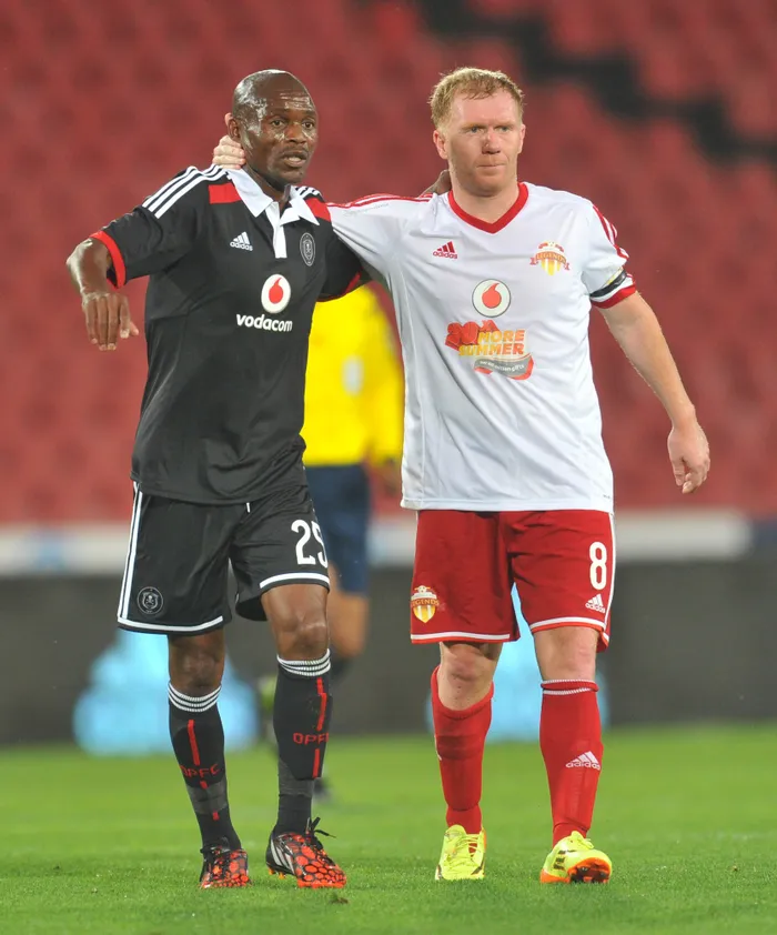 GOOD OLDEN DAYS: Naughty Mokoena of Orlando Pirates Legends and Paul Scholes lit up Mzantsi years
