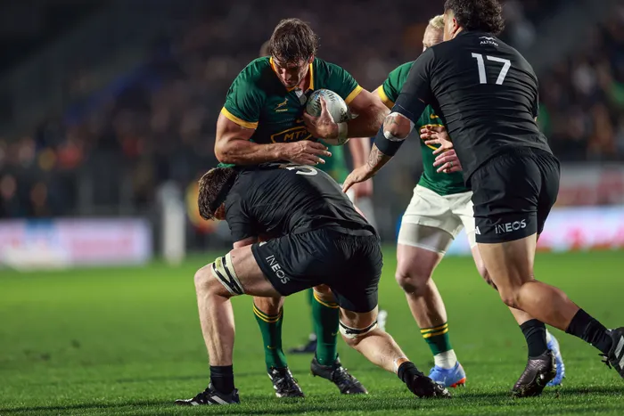 Massive challenge: Boks’ Eben Etzebeth v Zealand.Picture credit: Shane Wenzlick