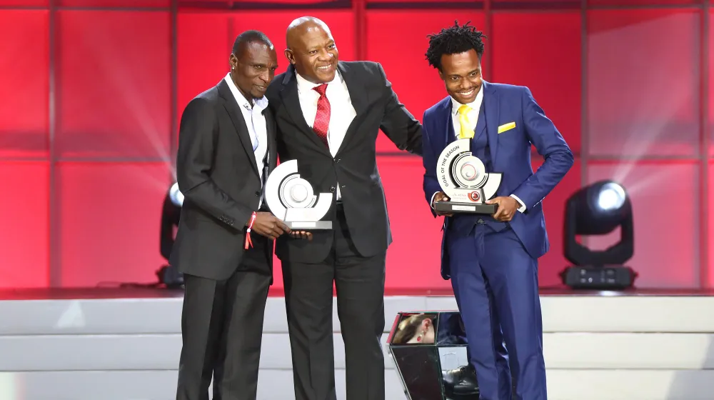 Both hands full. Percy Tau at Tuesday night's PSL Awards. Photo: Chris Ricco/BackpagePix