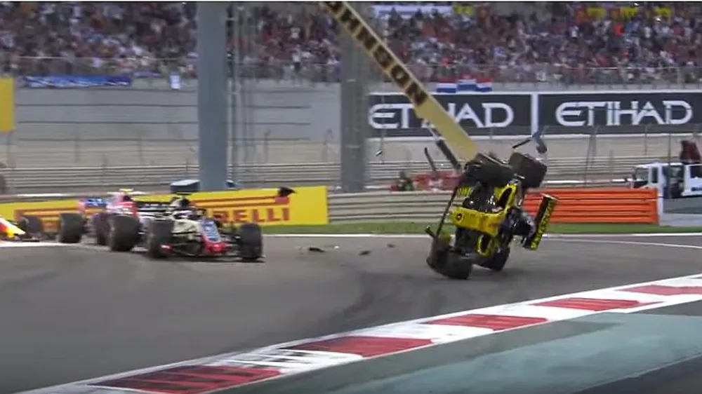 Hulkenberg was sent hurtling through the air on the first lap after colliding with Haas’s Romain Grosjean.