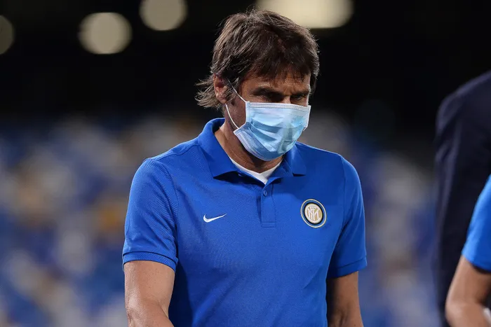 Inter Milan coach Antonio Conte enters the pitch prior to the Italian Cup second leg semifinal soccer match between Napoli and Inter Milan, at the Naples San Paolo Stadium, Italy, Saturday, June 13, 2020. The match is being played without spectators because of the COVID-19 restriction measures. (Cafaro/LaPresse via AP) Inter Milan coach Antonio Conte enters the pitch prior to the Italian Cup second leg semifinal soccer match between Napoli and Inter Milan, at the Naples San Paolo Stadium, Italy, Saturday, June 13, 2020. The match is being played without spectators because of the COVID-19 restriction measures. (Cafaro/LaPresse via AP)
