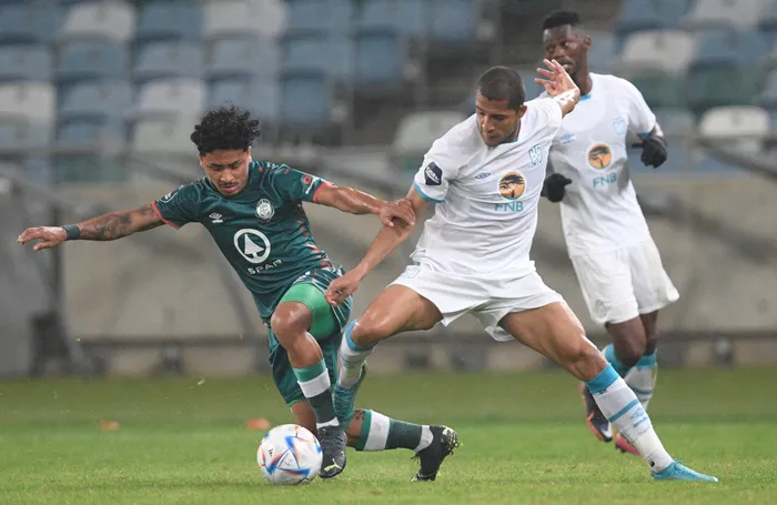 TOUGH: Darwin Gonzalez, right, in action v Amazulu