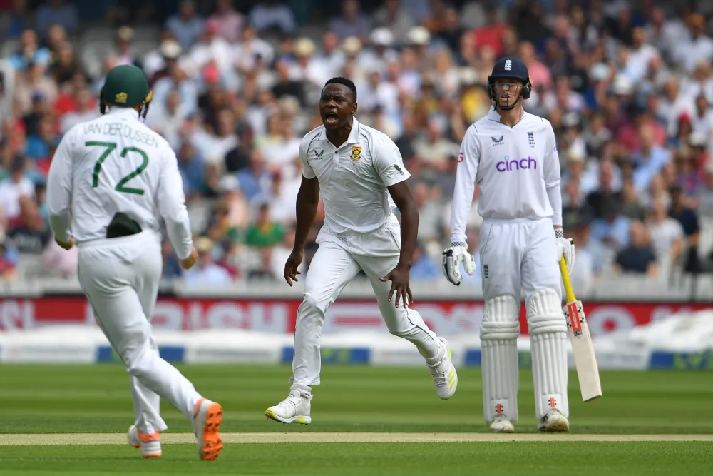 Rabada clean bowled Ollie Pope for 73 and added Stuart Broad and James Anderson (0) to the two wickets he took on the first day to put his team in the driving seat.