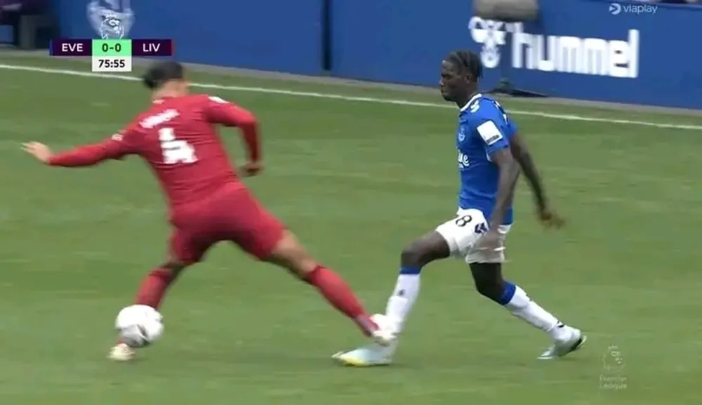 On the pitch the action was fierce and with 14 minutes to play, Van Dijk was shown a yellow card by referee Anthony Taylor for a high late tackle that caught Toffees midfielder Amadou Onana on the shin with 14 minutes to play.