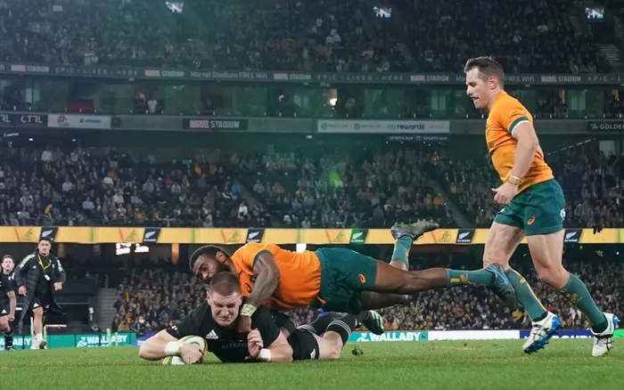 Jordie Barrett drukked a drie after the siren as the All Blacks edged Australia 39-37 in a Melbourne classic on Thursday to win the Bledisloe Cup for a 20th year in succession and move a step closer to back-to-back Rugby Championship crowns.