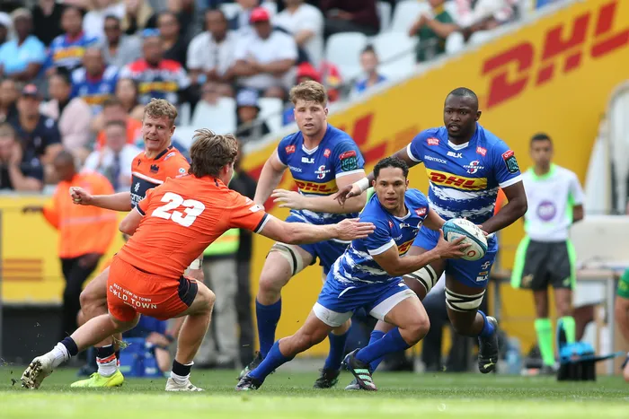 Stormers scrum-half Herschel Jantjies runs with the ball during their United Rugby Championship match against Edinburgh at Cape Town Stadium in Cape Town on Saturday.