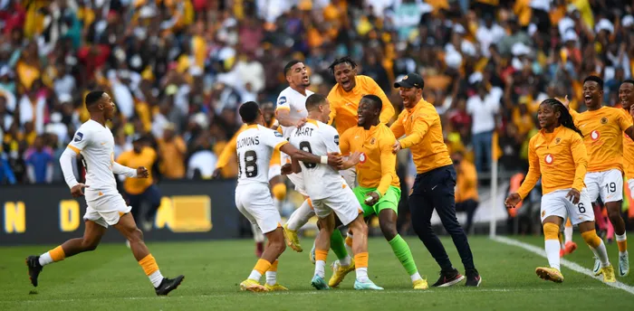Yusuf Maart of Kaizer Chiefs celebrates his goal against Orlando Pirates with teammates.