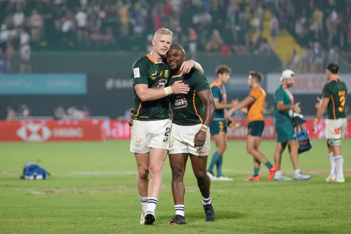 Siviwe Soyizwapi and the Blitzboks beat Ireland on Saturday to secure a fourth consecutive Dubai Sevens Series title. Photo: @Blitzboks/Twitter