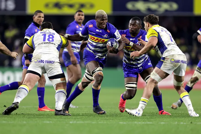 Stormers and Clermont rugby players in action Stormers' player Hacjivah Dayimani with Davit Kubriashvili and Alexandre Fischer of ASM Clermont Auvergne attempting tackles during the Heineken Champions Cup Round 1 Pool B match, at Stade Marcel-Michelin, France - 10 Dec 2022. Picture: Laszlo Geczo/INPHO/Shutterstock/BackpagePix