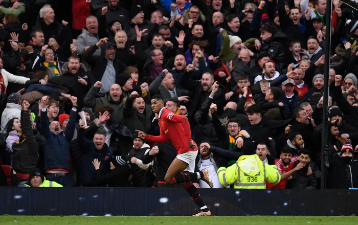 Manchester United's Marcus Rashford celebrates after scoring the winning goal during Saturday’s Manchester derby against Manchester City at Old Trafford in Manchester Manchester United's Marcus Rashford celebrates after scoring the winning goal during Saturday’s Manchester derby against Manchester City at Old Trafford in Manchester. Photo: Oli Scarff/AFP