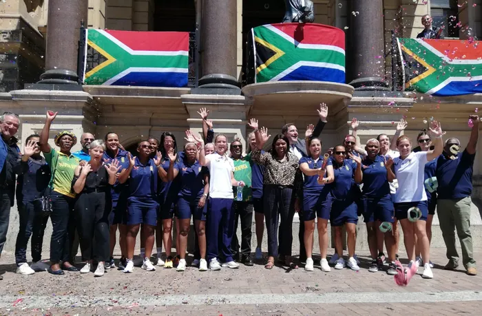 PRIDE: The Proteas Women’s national team at the City Hall.