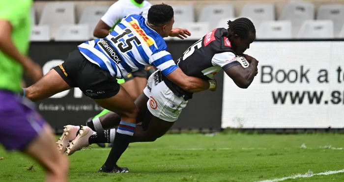 Then came a special moment for Sharks right wing Phikolomzi Sobahle, who was plucked out of club rugby to make his Currie Cup debut. Just a few hundred metres from Hollywoodbets Kings Park is the College Rovers clubhouse and Sobahle’s teammates would have been celebrating there as he finished strongly in the corner after excellent lineout ball.