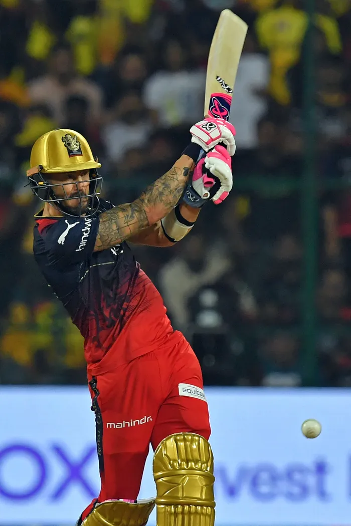 Royal Challengers Bangalore's Faf du Plessis plays a shot during the Indian Premier League (IPL) T20 cricket match against Chennai Super Kings at the M Chinnaswamy Stadium in Bengaluru Royal Challengers Bangalore's Faf du Plessis plays a shot during the Indian Premier League (IPL) T20 cricket match against Chennai Super Kings at the M Chinnaswamy Stadium in Bengaluru on April 17, 2023. Picture: Manjunath Kiran/AFP