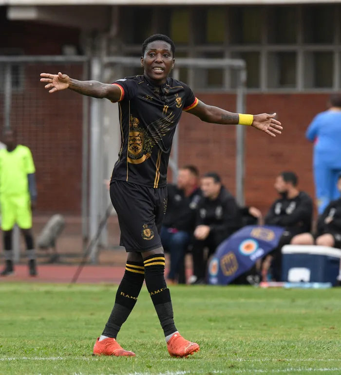 Elias Pelembe of Royal AM during the DStv Premiership 2022/23 match against Cape Town City at Chatsworth Stadium on 29 April 2023. Picture: Sydney Mahlangu/BackpagePix