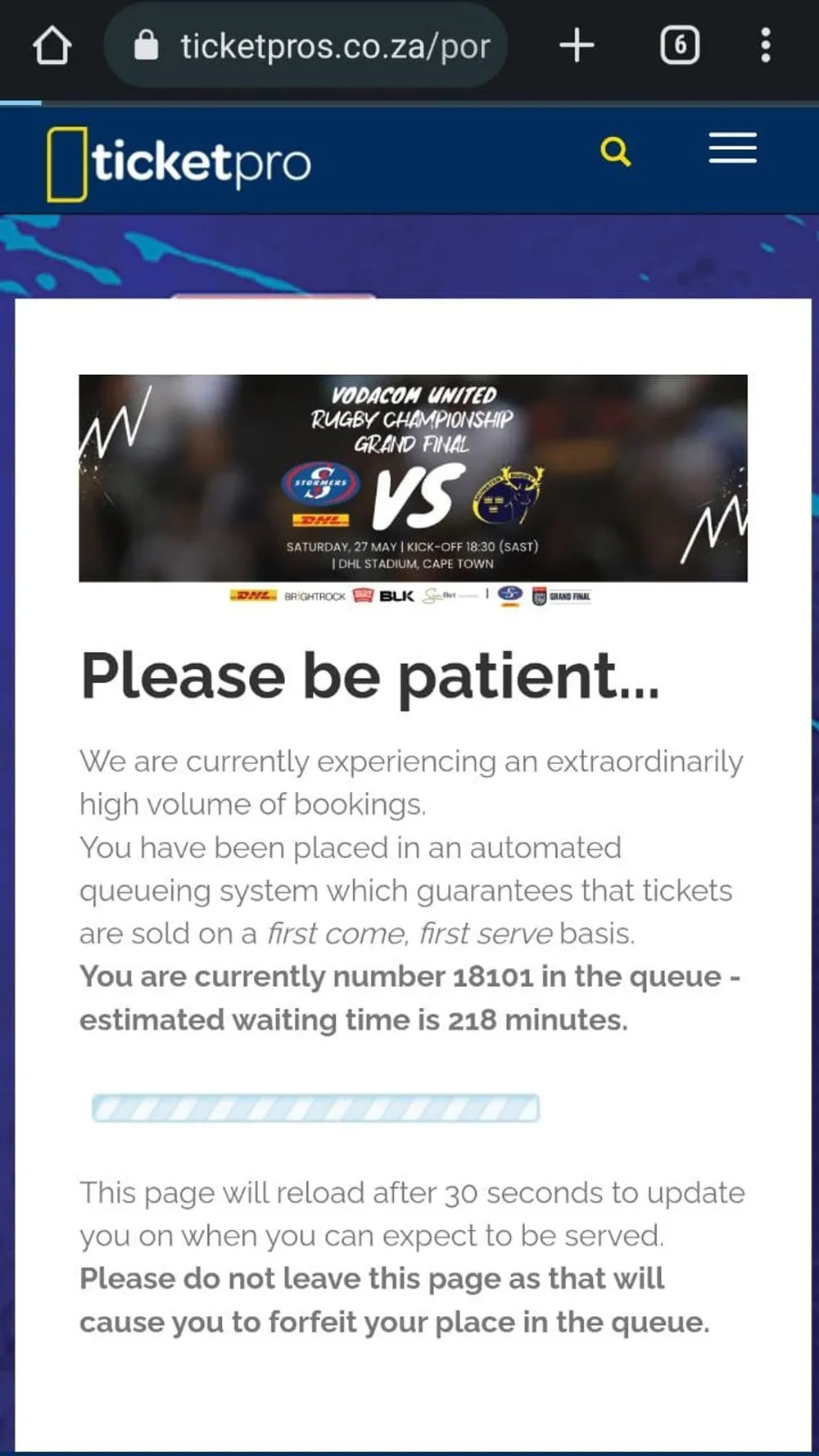 Earlier, during IOL Sport’s investigation, fans were given a number for a place in the queue, and the total minutes it will take to get to the front of the queue and onto the website.
