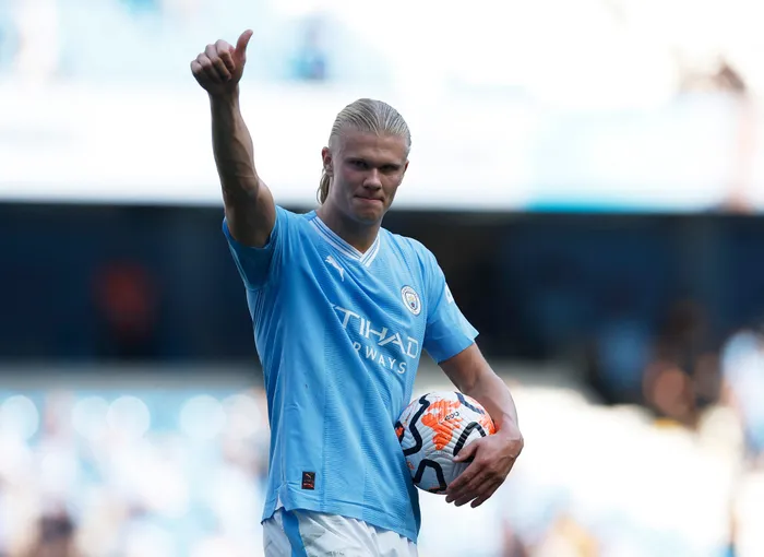 Erling Haaland netted a second-half hat-trick as pacesetters Manchester City maintained their 100% record in the Premier League with a 5-1 thrashing of Fulham on Saturday.