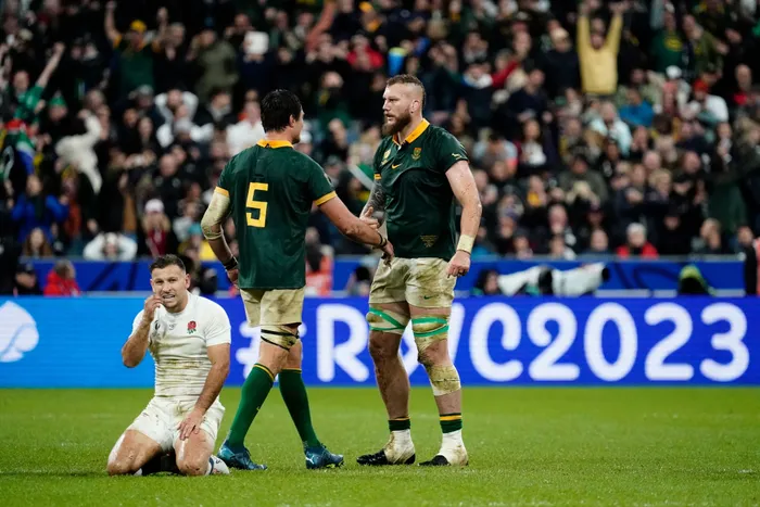 South Africans’ naels were afgekou on Saturday night, with the Springboks on the verge of a semifinal exit at the hands of Owen Farrell and his teammates at Stade de France.