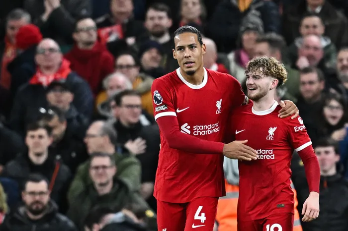 Liverpool's Virgil van Dijk and Harvey Elliott scored in their Premier League match against Luton Town. Picture: Paul Ellis / AFP