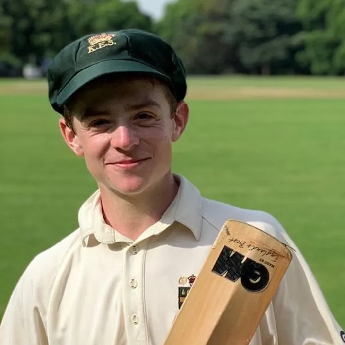 David Teeger in his KES cricket kit, posing for a photo with his bat File. Cricket South Africa on Monday announced that it had stripped SA Under-19 captain David Teeger of his captaincy for the Cricket World Cup in the rainbow nation starting later this month. Picture: twitter.com/OldEdsJhb