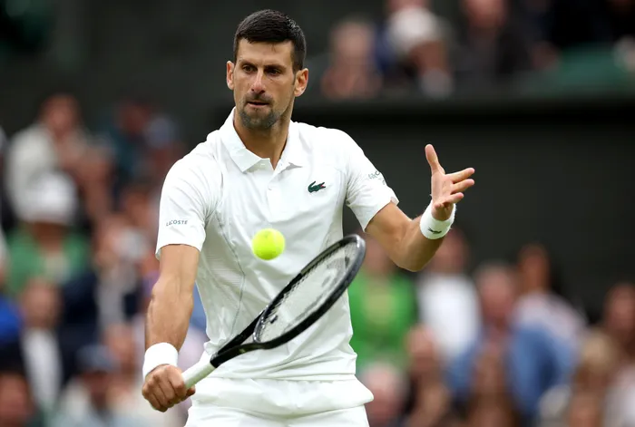 epa11463593 Novak Djokovic of Serbia in action during the Men’s 3rd round match against Alexei Popyrin of Australia at the Wimbledon Championships, Wimbledon, Britain, 06 July 2024. EPA/ADAM VAUGHAN EDITORIAL USE ONLY
