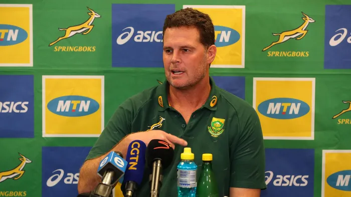 WORKING WITH TEAM: Rassie Erasmus is working with a new team which excludes captain Siya Kolisi. Photo: Chris Ricco/BackpagePix. WORKING WITH TEAM: Rassie Erasmus is working with a new team which excludes captain Siya Kolisi. Photo: Chris Ricco/BackpagePix.