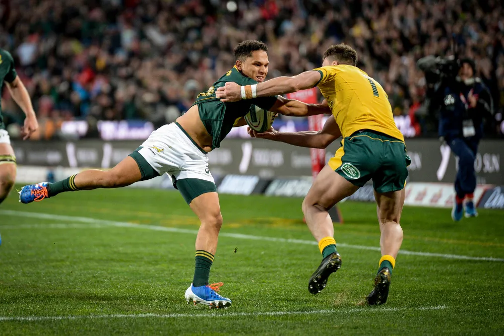 Lukhanyo Am, Damian de Allende, Faf de Klerk, Andre Esterhuizen, Warrick Gelant, Elton Jantjies, Herschel Jantjies, Cheslin Kolbe, Jesse Kriel, Makazole Mapimpi, Sbu Nkosi, Willie le Roux, Handré Pollard, Cobus Reinach, Frans Steyn