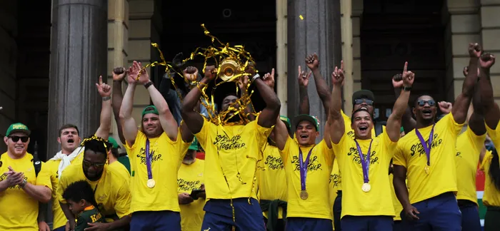 South Africa - Cape Town - 11 November 2019 - The Springboks held their World Cup Rugby trophy tour in Cape Town. They kicked off the visit by appearing on stage in front of the civic centre. They were warmly welcomed by thousands of excited fans that lined the streets as the bus parade continued through the city. Picture: Armand Hough/African News Agency(ANA) South Africa - Cape Town - 11 November 2019 - The Springboks held their World Cup Rugby trophy tour in Cape Town. They kicked off the visit by appearing on stage in front of the civic centre. They were warmly welcomed by thousands of excited fans that lined the streets as the bus parade continued through the city. Picture: Armand Hough/African News Agency(ANA)