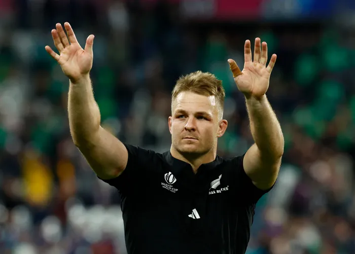 Former All Blacks captain Sam Cane celebrates. Picture: Gonzalo Fuentes/REUTERS