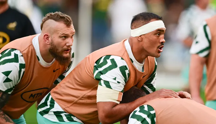 SPRINGBOKS: 15 Aphelele Fassi, 14 Kurt-Lee Arendse, 13 Lukhanyo Am, 12 Andre Esterhuizen, 11 Makazole Mapimpi, 10 Manie Libbok, 9 Cobus Reinach, 8 Evan Roos, 7 Ben-Jason Dixon, 6 Phepsi Buthelezi, 5 RG Snyman, 4 Salmaan Moerat, 3 Thomas du Toit, 2 Johan Grobbelaar, 1 Jan-Hendrik Wessels.