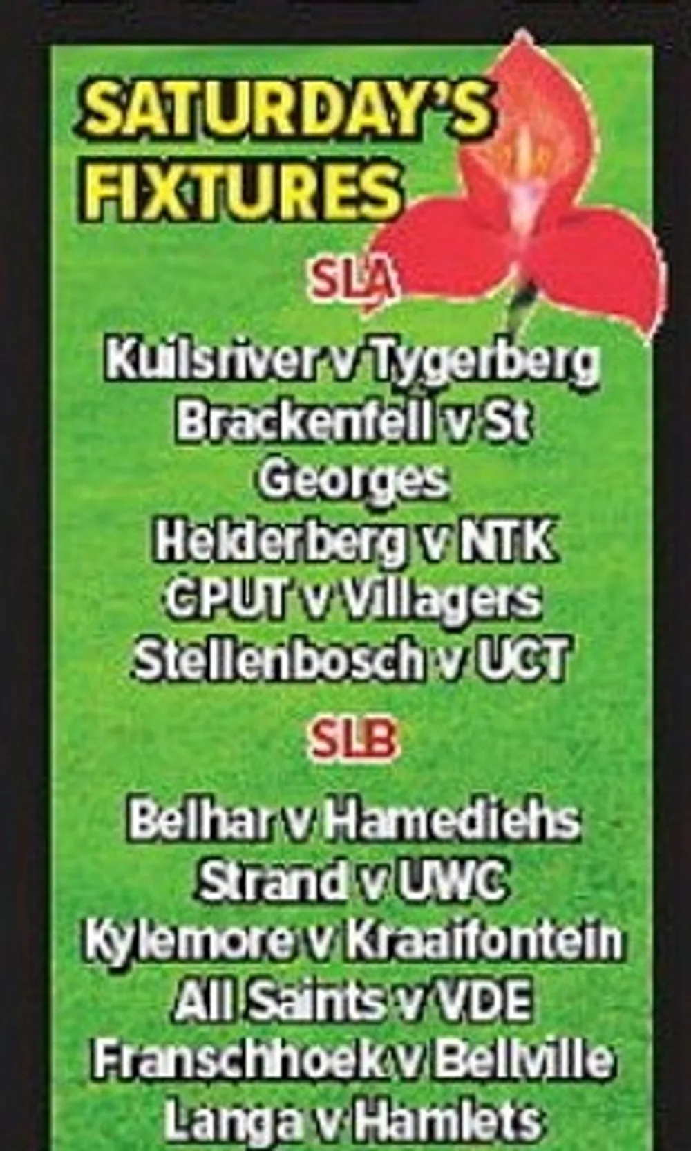SATURDAY’S FIXTURES