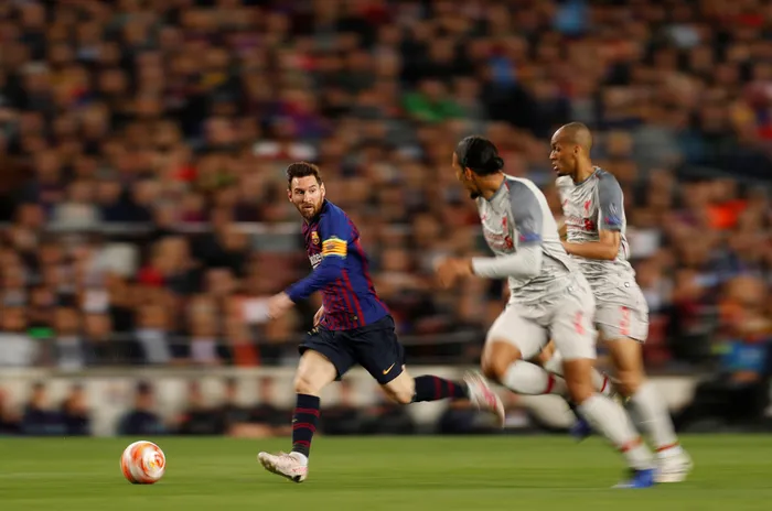 Barcelona's Lionel Messi in action with Liverpool's Fabinho and Virgil van Dijk. Photo: John Sibley/Reuters Barcelona's Lionel Messi in action with Liverpool's Fabinho and Virgil van Dijk. Photo: John Sibley/Reuters