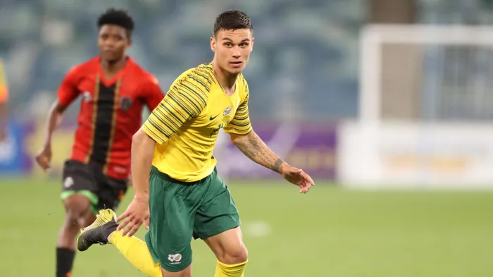CHALLENGED: Liam Jordan of South Africa challenged by Peter Banda of Malawi during the 2019 Cosafa Cup Plate final match. Photo: Samuel Shivambu/BackpagePix. CHALLENGED: Liam Jordan of South Africa challenged by Peter Banda of Malawi during the 2019 Cosafa Cup Plate final match. Photo: Samuel Shivambu/BackpagePix.