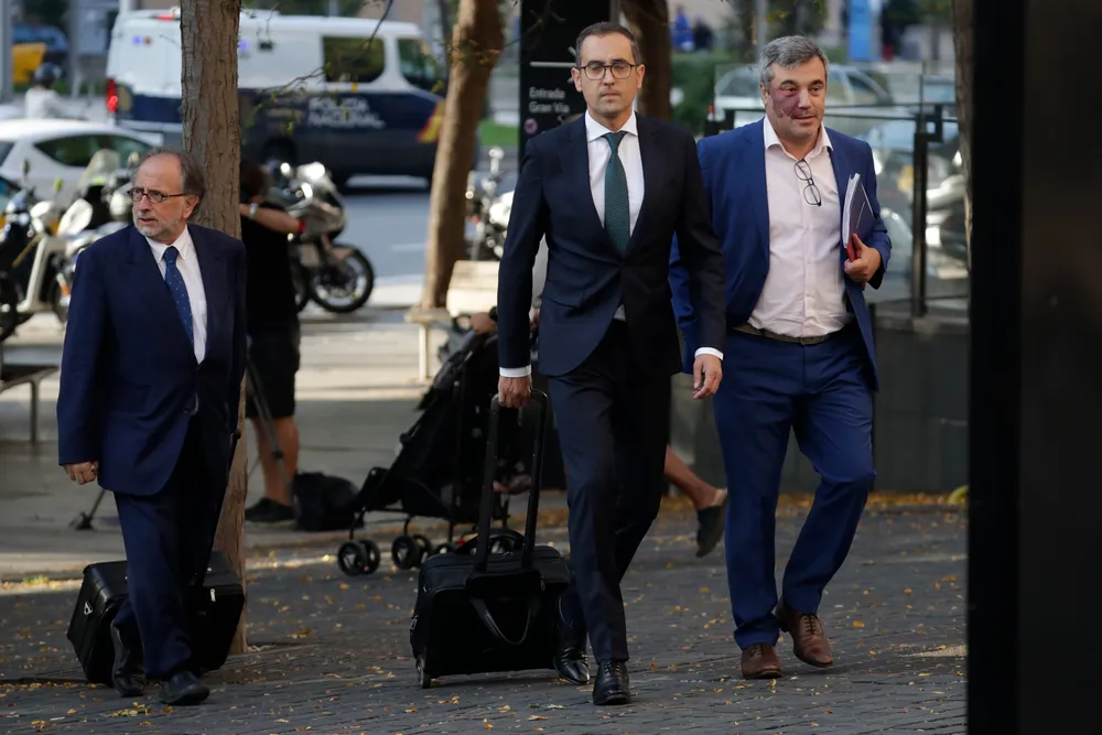 READY FOR BATTLE: The FC Barcelona legal team arrive at court in Barcelona, Spain. Picture: Emilio Morenatti/AP.