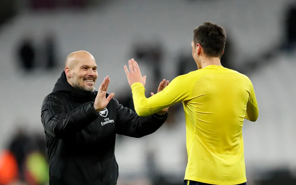 MAKING A MARK: Arsenal's interim head coach Freddie Ljungberg, left. Picture: Kirsty Wigglesworth/AP.