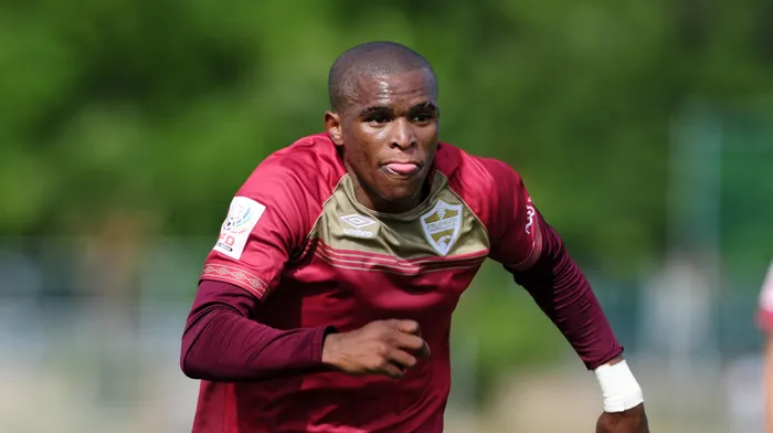 The 21-year-old forward refused to go down under Buhle Mkhwanazi’s challenge and couldn’t get away his left-footed shot with enough power to